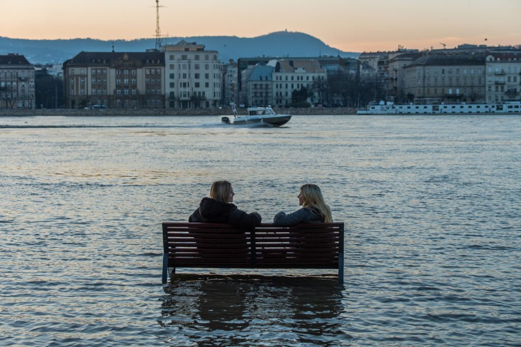 En raison d’un temps inhabituellement humide et chaud, le Danube a débordé à Budapest le 28 décembre 2023.