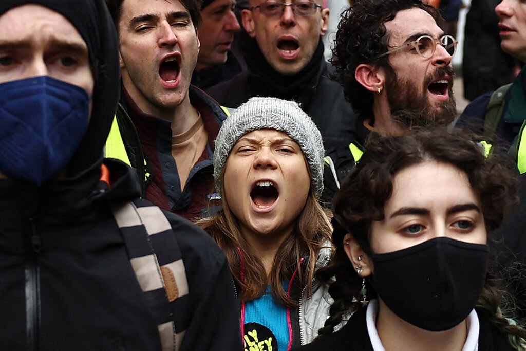 La militante suédoise pour le climat Greta Thunberg se joint aux manifestants lors de la manifestation « Oily Money Out » organisée par Fossil Free London et Greenpeace.