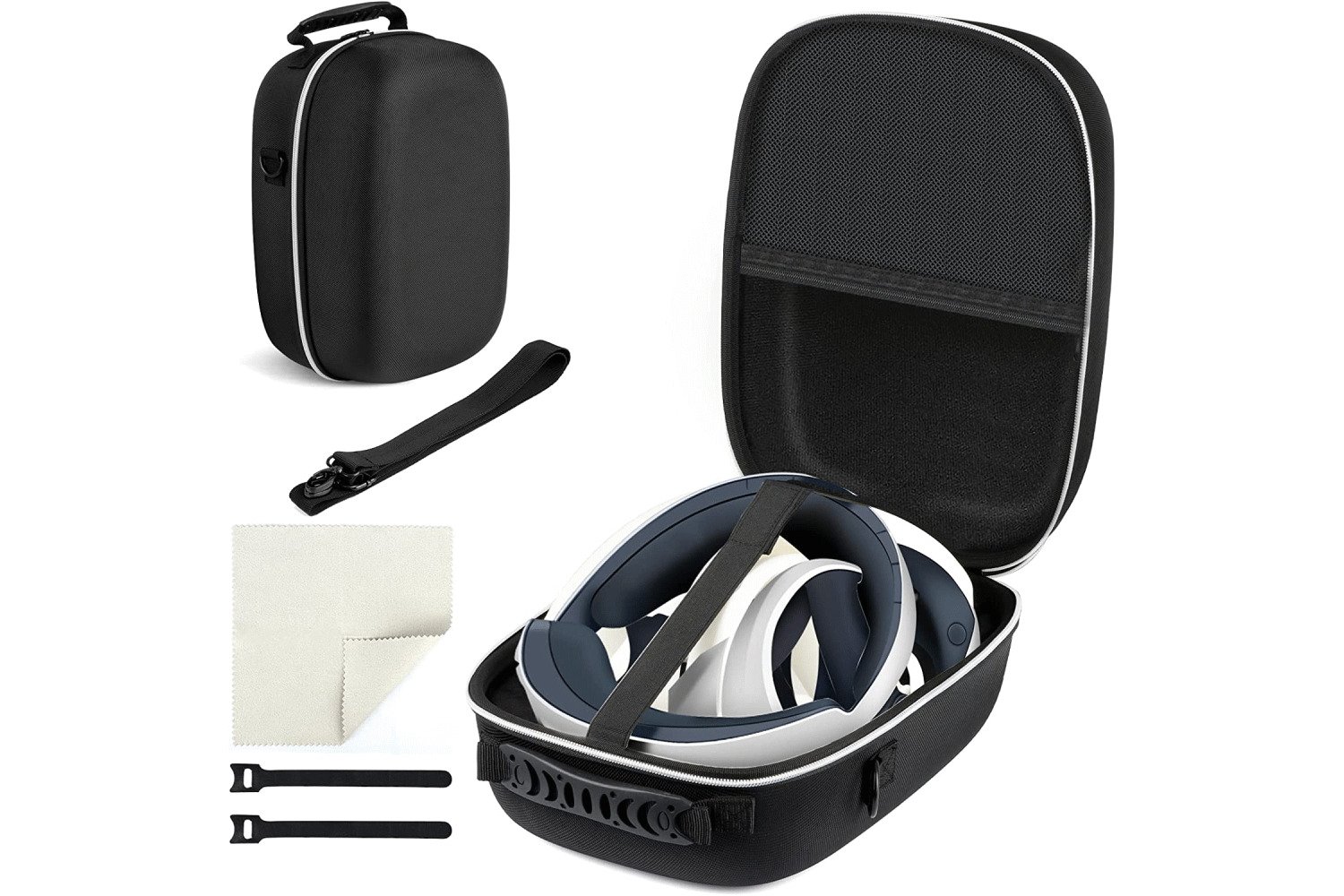 L’étui de transport rigide HuiJuKeJi est conçu pour accueillir facilement à la fois le casque PSVR 2 et ses contrôleurs. Il y a aussi une pochette supplémentaire pour ranger vos câbles, adaptateurs et autres choses.