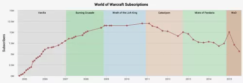 Un rapport sur les résultats du premier trimestre 2017 mentionnait que l’extension de 2016, Legion, dépassait légèrement son prédécesseur immédiat, Draenor. À partir de là, Bellular Warcraft a estimé que le jeu comptait à cette époque environ 5,8 millions d’abonnés. Ils sont arrivés au nombre actuel de 7,25 millions en comptant les pixels du graphique vers le haut depuis début 2017.