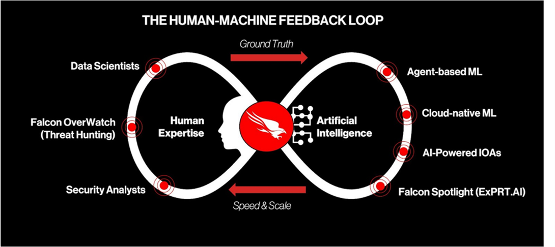 Les gangs de cybercriminels dotés d’une expertise en IA et en ML ont montré qu’ils pouvaient passer du point d’entrée initial à un système interne dans l’heure et 24 minutes suivant le moment initial de la compromission. Le rapport CrowdStrike 2022 sur les menaces mondiales a noté plus de 180 adversaires suivis et une augmentation de 45 % des intrusions interactives. Dans cet environnement, garder une longueur d’avance sur les menaces n’est pas un problème à l’échelle humaine. Cela exige la puissante combinaison de l’apprentissage automatique et de l’expertise humaine.