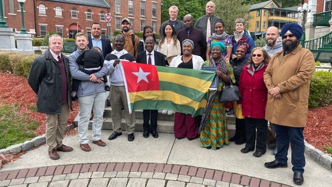 NORWICH Global City Norwich et la Communauté togolaise de Connecticut ont organisé jeudi une courte cérémonie de lever du drapeau de la République du Togo, un pays d’Afrique de l’Ouest voisin du Ghana et du Bénin. Jeudi a marqué 63 ans de l’indépendance du pays vis-à-vis de la France. Des membres de la communauté togolaise se sont rendus à la mairie de Norwich pour l’occasion, rejoints par des responsables politiques et associatifs locaux.