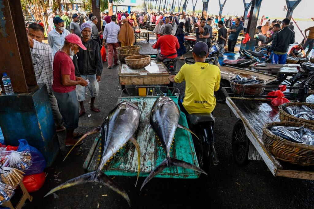 Thon albacore dans un port de pêche à Banda Aceh, Indonésie. Le pays a maintenant pris la tête des pays membres de l’ITOC au milieu des appels à une interdiction temporaire de la pêche au thon | Président Mahyuddin/AFP via Getty Images