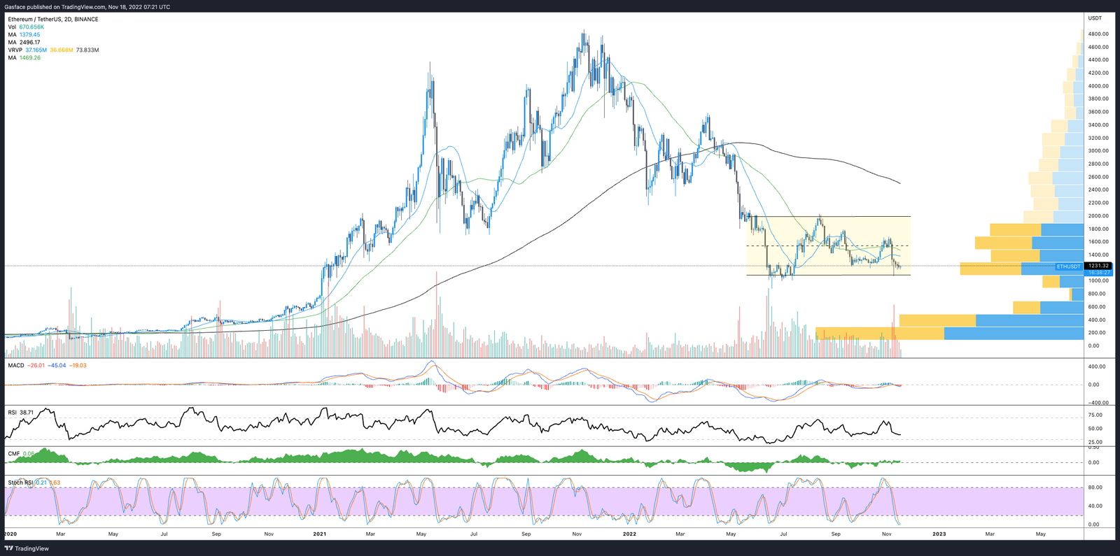 Actuellement, le prix des Ethers semble un peu mou du point de vue de l’analyse technique, et les nouvelles récentes concernant le voleur FTX détenant la 31e plus grande position au comptant d’Ether, ainsi que les inquiétudes concernant la censure, la centralisation, l’application de l’Office of Foreign Assets Control des États-Unis sur cette baleine et d’autres protocoles basés sur Ethereum qui ont une exposition ou une proximité de faillite avec FTX et Alameda pourraient susciter un peu de FUD qui a un impact sur l’action des prix des altcoins.