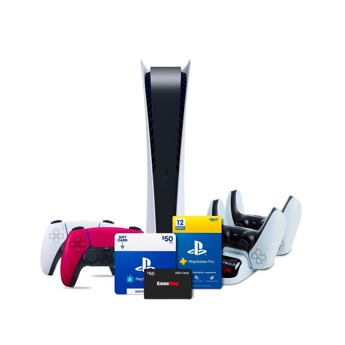 Ces deux réapprovisionnements PS5 seront sous forme de bundle, ce qui est typique de GameStop. Ils sont également exclusifs aux membres GameStops Power Rewards Pro, un abonnement payant qui coûte 14,99 $ par an. La PS5 Digital Edition sera disponible en deux configurations groupées. L’un coûte 658,97 $ et contient la console (normalement 399 $ seule), une manette DualSense supplémentaire en rouge, une station de charge PowerA DualSense, une carte-cadeau GameStop de 50 $, une carte-cadeau PlayStation Network de 50 $ et un abonnement de 12 mois à PlayStation Plus .
