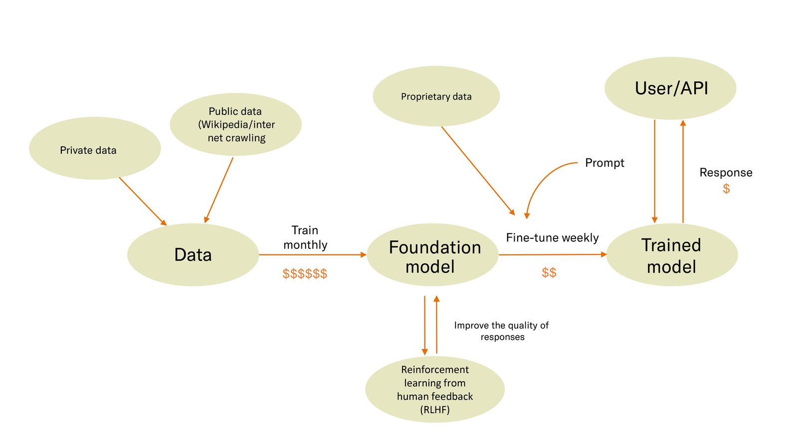 Complexity of operationalizing foundation models: Training a model is a process that is never done. It is a continuous process where a models weights and biases are updated each time a model goes through a process called fine-tuning.
