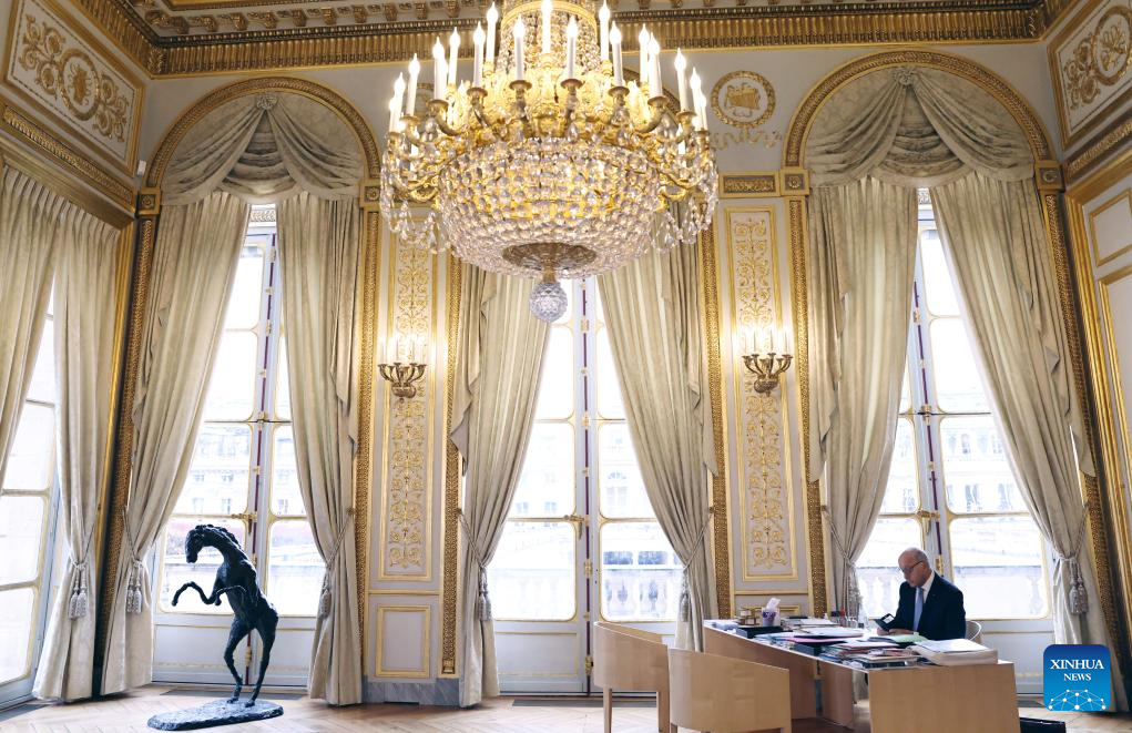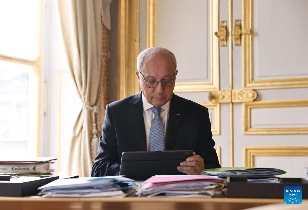Laurent Fabius, président du Conseil constitutionnel et ancien Premier ministre français, travaille à Paris, en France, le 12 décembre 2023. (Xinhua/Gao Jing)