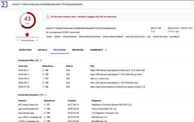 Jeudi soir, le téléchargement proposé par ce site a été détecté comme malveillant par 43 moteurs antimalware :