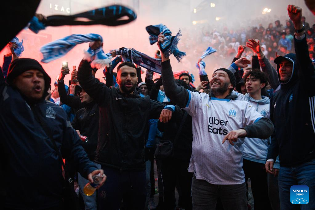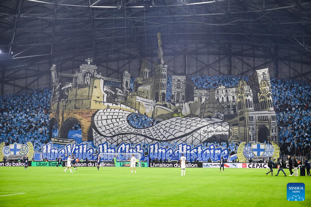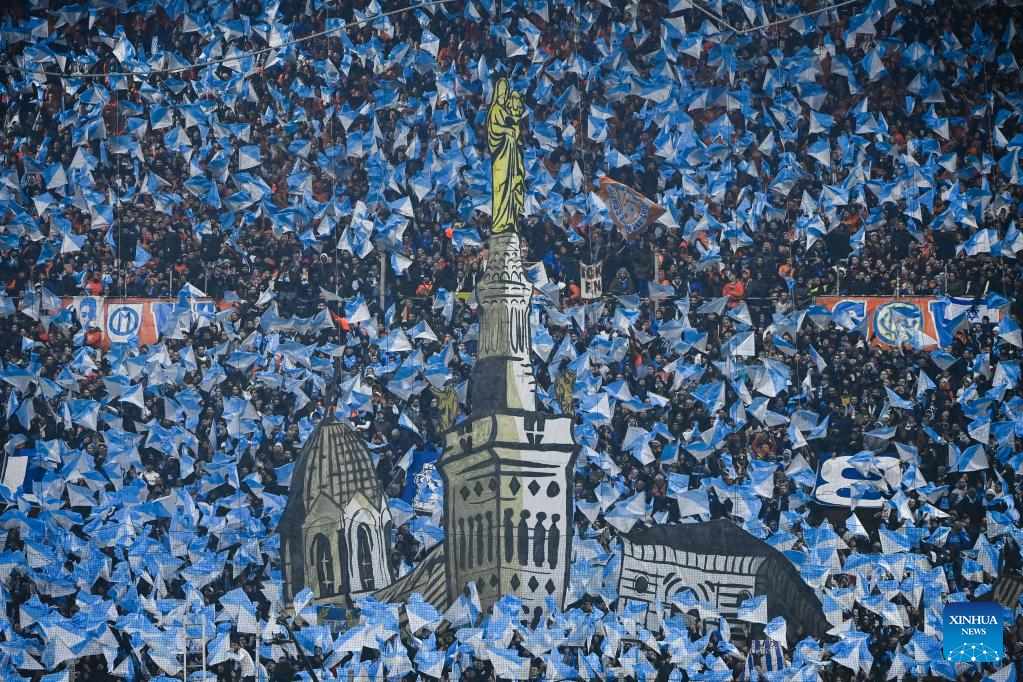 Les supporters de l’Olympique de Marseille (OM) sont vus avant un match de football de Ligue 1 entre l’Olympique de Marseille (OM) et le Paris Saint-Germain (PSG) au stade Vélodrome de Marseille, France, le 26 février 2023. (Photo par Clément Mahoudeau/Xinhua)