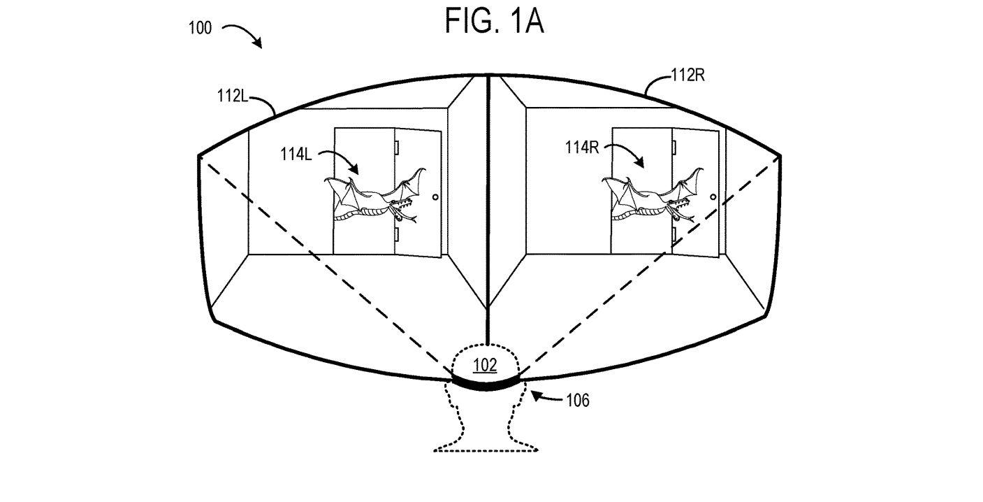 « Un flux vidéo traverse l’appareil, de la caméra à l’écran, de sorte que l’utilisateur visualise la scène physique via le flux vidéo sans visualiser directement la scène physique. De plus, les images virtuelles peuvent être combinées avec le flux vidéo de la caméra pour créer une expérience de réalité augmentée (AR). Le visiocasque opaque peut présenter divers avantages par rapport à un système AR avec un écran transparent », indique le document.