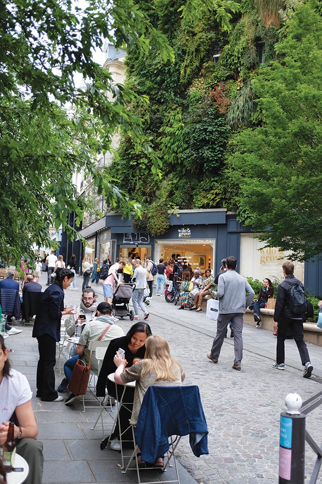 When visitors would step off the Metro at the Sentier stop a decade ago, it was usually to take a stroll south down the Rue Montorgueil, an historic, postcard-perfect market street beloved of foodies. Yet today, many of those stepping off the Metro are walking north instead, across Rue Raumur and up Rue des Petits Carreaux into the Sentier. There, the narrow, cobblestone streets are lined with shops, bars and restaurants, mostly recently opened. People dine and sip drinks in the sun at tables covering the square between Rue des Petits Carreaux and Rue dAboukir, overlooked by a towering wall of greenery known as the Oasis of Aboukir a five-storey vertical garden created in 2013 by the botanist/artist Patrick Blanc to cover what was once a sad faade of bare cement.