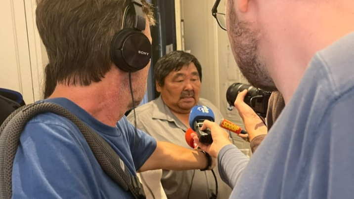 Aluki Kotierk, le président de Nunavut Tunngavik Inc., a traduit les mots de Mapsalak en anglais pour une foule de journalistes.