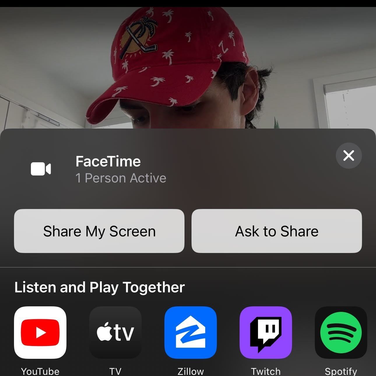 Il est en fait très simple de mettre cela en œuvre. Une fois que les appareils pris en charge sont prêts à fonctionner, nous lançons un appel Facetime entre eux. Dans cet exemple, je partage l’écran de mon iPhone avec mon iPad. Une fois que vous avez démarré un appel Facetime, suivez ces étapes :