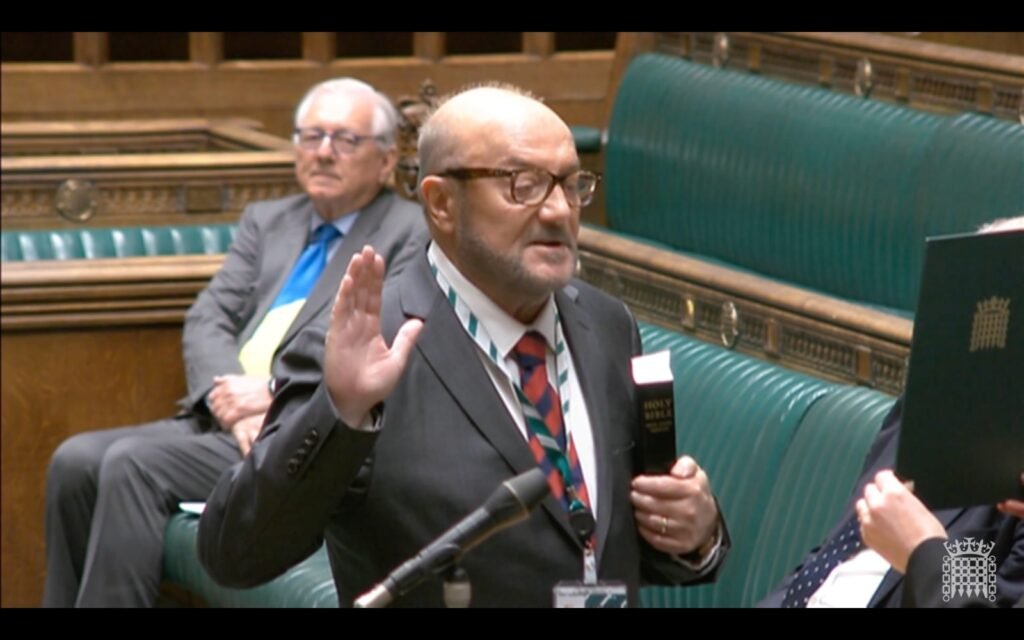 Après avoir prêté allégeance au monarque, Galloway a serré la main de la présidente des Communes Lindsay Hoyle, avant de s’adresser aux journalistes qui attendaient devant le Parlement.