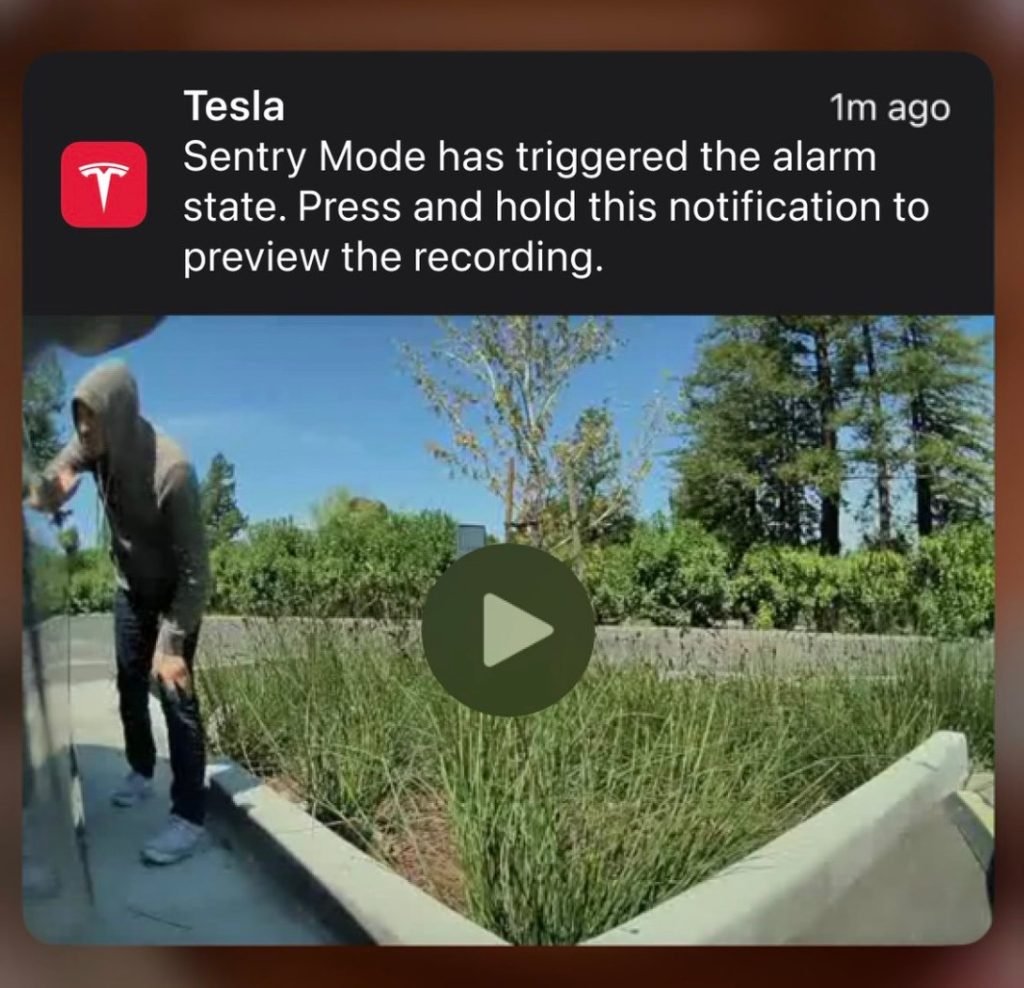 Le constructeur automobile propose également des vidéos en mode Sentinelle consultables à partir des notifications :