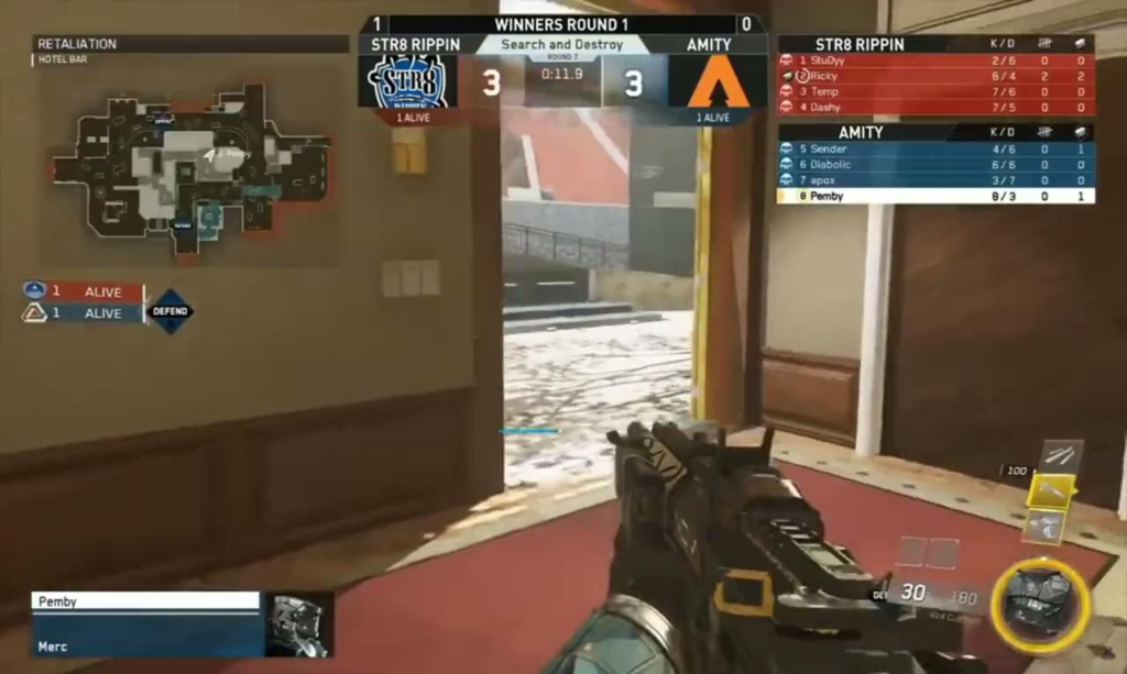 Un vieil adage dit : Mais le pire ennemi que vous puissiez rencontrer sera toujours vous-même. Cela ne s’applique pas toujours dans La morue, mais ne le dites pas à Sean « Pemby » Pembroke. Lors d’un match à Guerre infinie, Pemby et son équipe Amity étaient dans un match Search and Destroy contre Str8 Rippin. La carte était à égalité 3-3 et Pemby était dans un 1 contre 1 qu’il aurait pu facilement gagner. Cependant, au lieu de gagner la manche, Pemby a décidé d’essayer une ruse et de réaliser une manœuvre sophistiquée de mur à mur.