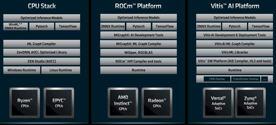 Mais à long terme, AMD doit disposer de sa propre pile complète couvrant tous les cas d’utilisation de l’IA sur ses nombreux appareils :