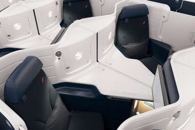 Encore plus excitant ? Votre siège se transformera en sa propre sorte de cabine, avec une porte coulissante qui vous offre une intimité totale depuis la passerelle. La porte fermée agit comme une alerte du MDN pour les agents de bord, ce qui signifie que vous pourriez en fait obtenir le type de sommeil dont vous avez besoin lors d’un vol yeux rouges.